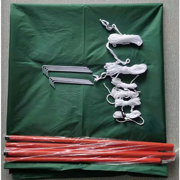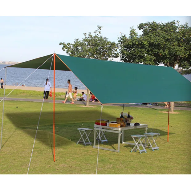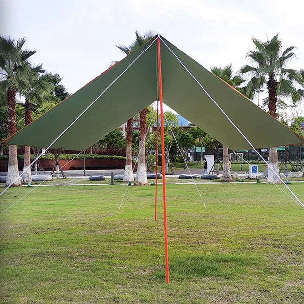 Camping Tarp Canopy je narejen iz 210D poliestra s srebrno prevleko, ki nudi dolgotrajno obrabo in zagotavlja odlično UV odpornost.