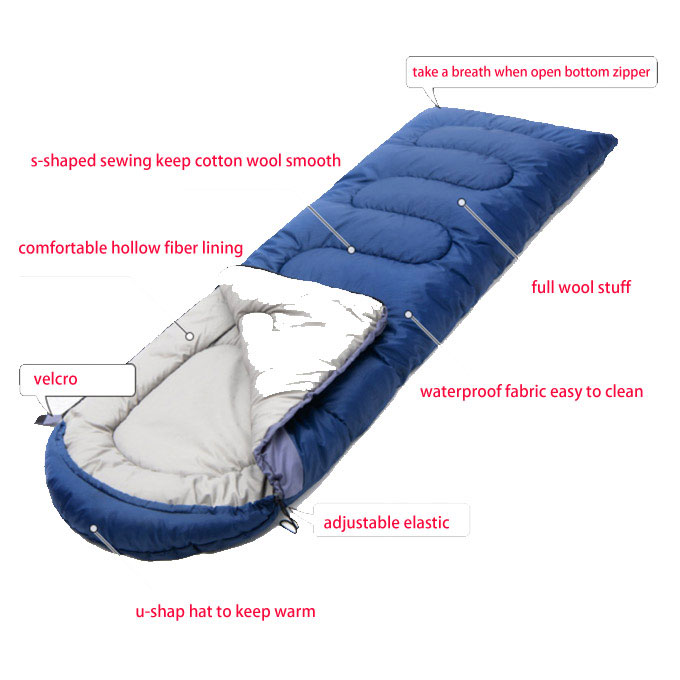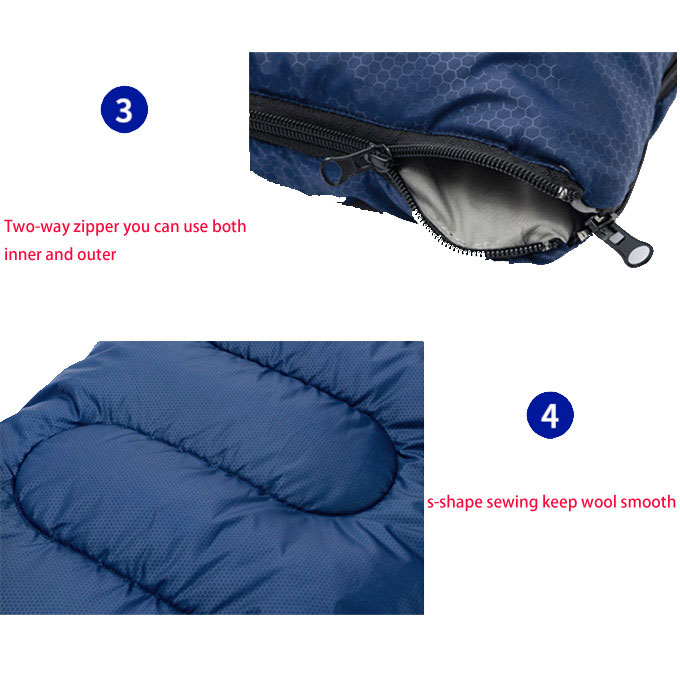 Spalna vreča za odrasle je spalna vreča, zasnovana posebej za odrasle in je ena izmed obvezne opreme za ljubitelje pustolovščin na prostem. Spalna vreča je izdelana iz visokokakovostnih materialov, z zunanjo plastjo, odporno proti obrabi, vodoodpornosti in trganju, ter mehko, zračno in toplo prevlečeno notranjo plastjo iz poliestra, ki zagotavlja udoben spanec in hkrati ščiti tiste, ki jih zebe, pred mrazom. zimske noči. Obdrži toplo. Spalna vreča za odrasle je razumno oblikovana in primerna za odrasle različnih velikosti. Spalna vreča je primerne širine in debeline, ki zagotavlja udobje in zadostno toploto med spanjem. Poleg tega ima ta spalna vreča edinstven "trakov dizajn", zaradi katerega je prostor za noge bolj prostoren in vaša stopala ne bodo otrplo ali stisnjena. Spalna vreča je enostavna za uporabo in prenašanje, zlahka se zloži v kompakten paket in je opremljena z zračno črpalko na potiskanje za hitro napihovanje, ki omogoča, da se vaša spalna vreča hitro napihne in je pripravljena za spanje. Ta spalna vreča ima zelo širok spekter uporabe. Poleg kampiranja in pohodništva je primeren tudi za spanje v zaprtih prostorih in hotelski počitek, kar vam omogoča visokokakovostno izkušnjo spanja v različnih situacijah uporabe. Spalna vreča za odrasle je visokokakovosten izdelek spalne vreče. S svojo vrhunsko toplotno zmogljivostjo, udobjem in prenosljivostjo je zelo primeren za ljubitelje na prostem ali potepuhe za uporabo v naravi ali ko se zadržujejo v zaprtih prostorih, kar vam omogoča, da ga imate na poti. Najbolj udobno in udobno spanje.